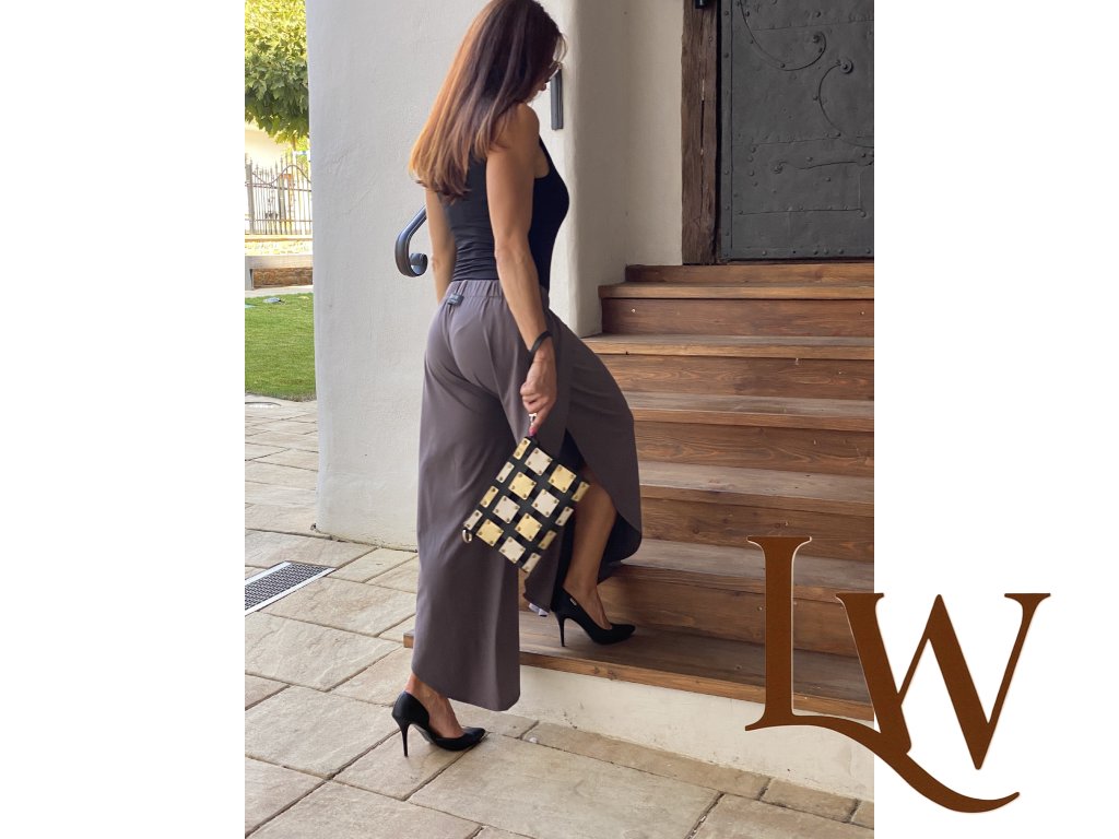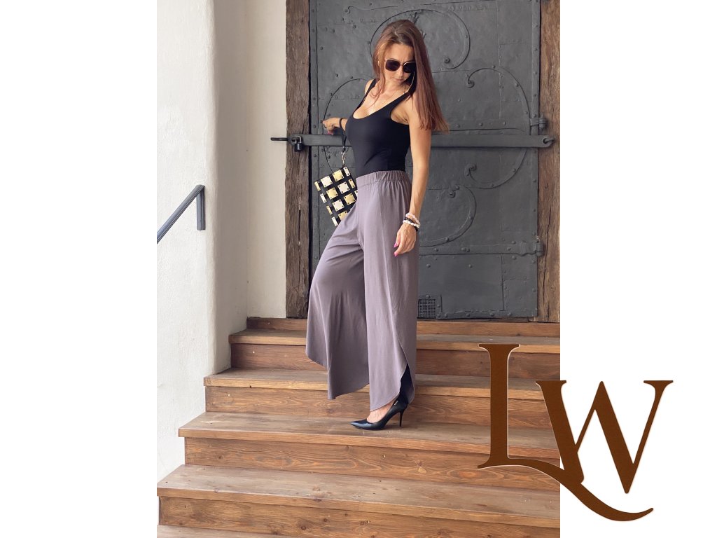 Letné ľahké nohavice s rásporkom po bokoch a vysokým pásom. Ušité z padavého viskózového úpletu. Možnosť výberu dvoch výškových variant. Ručne šité na Slovensku. Ak máte akúkoľvek požiadavku na prispôsobenie produktu podľa vašich požiadaviek napíšte nám ich do poznámky. Budeme vás kontaktovať a dohodneme si všetky potrebné detaily.