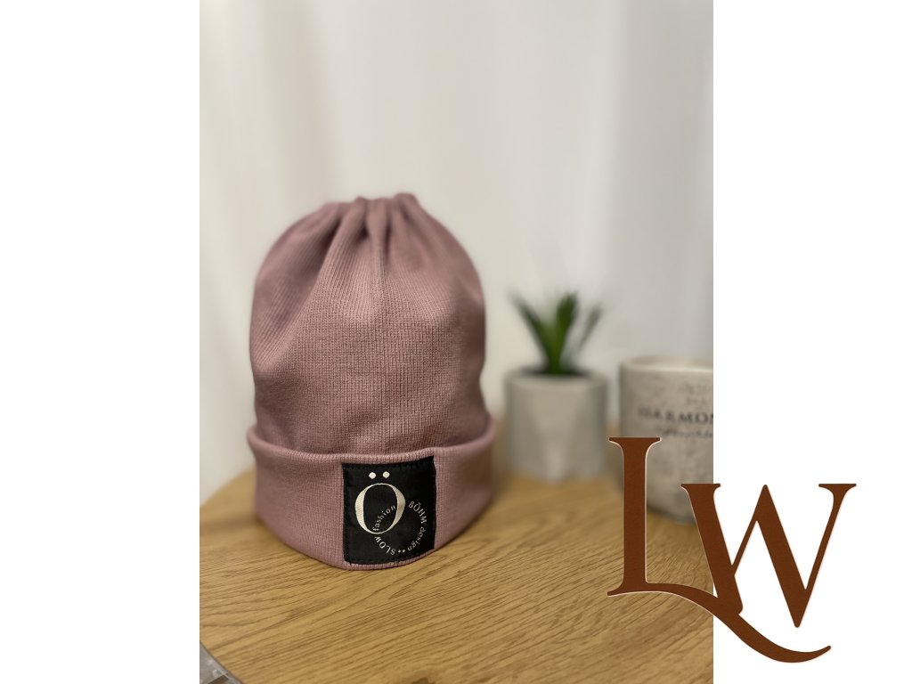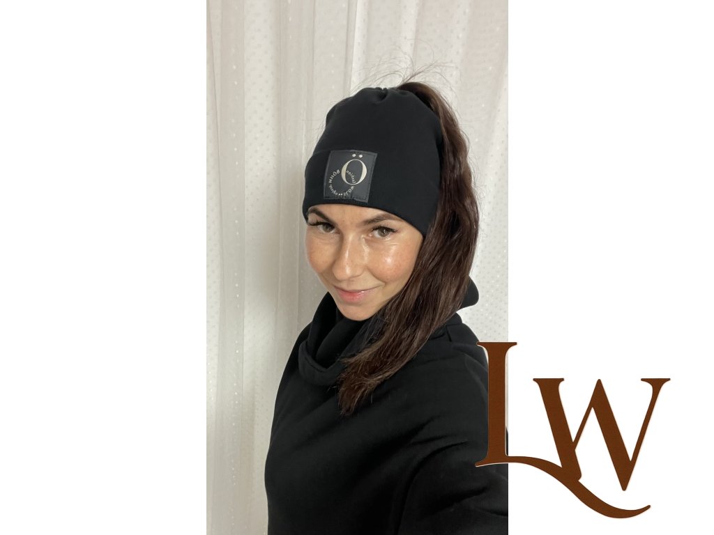 Jednovrstvová čiapka Ema ušitá z Rebro úpletu s otvorom na cop a ohybom v spodnej časti.