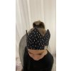 Korunková čelenka ušitá z dvoch vrstiev tenkého úpletu.. Vhodná do teplejších jarných dní ale aj ako doplnok do detských účesov.