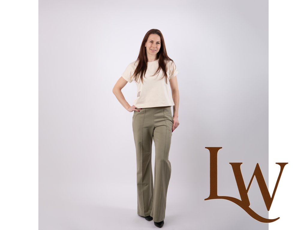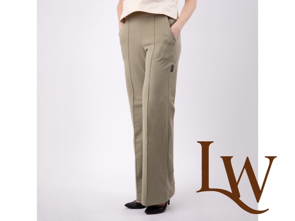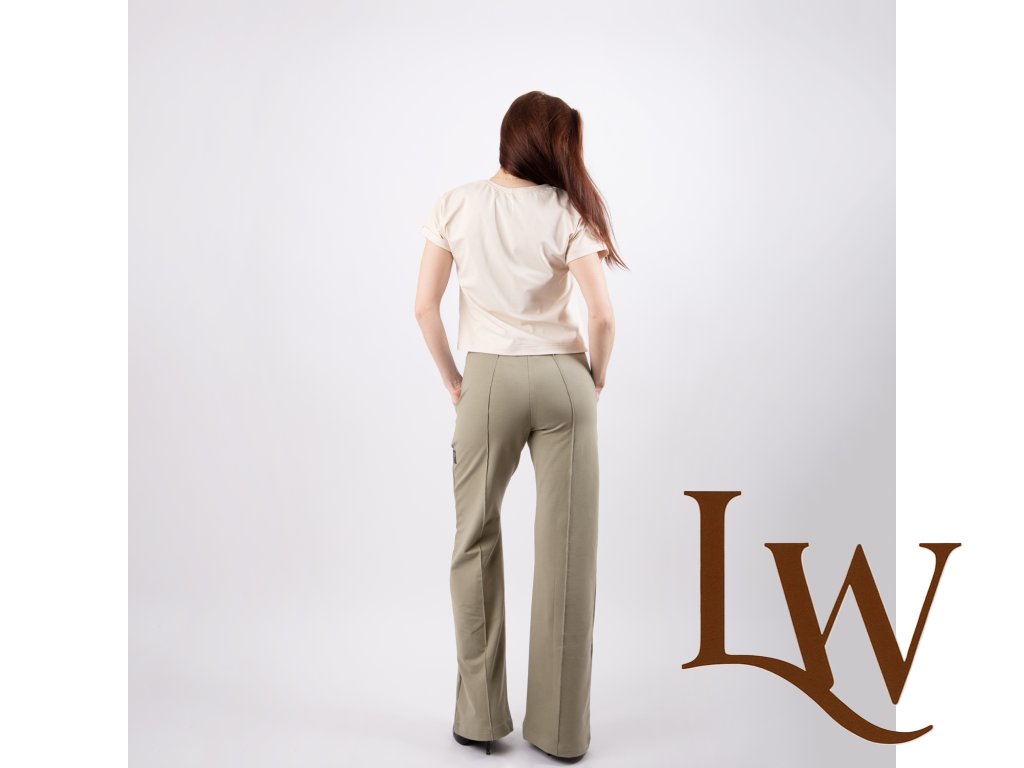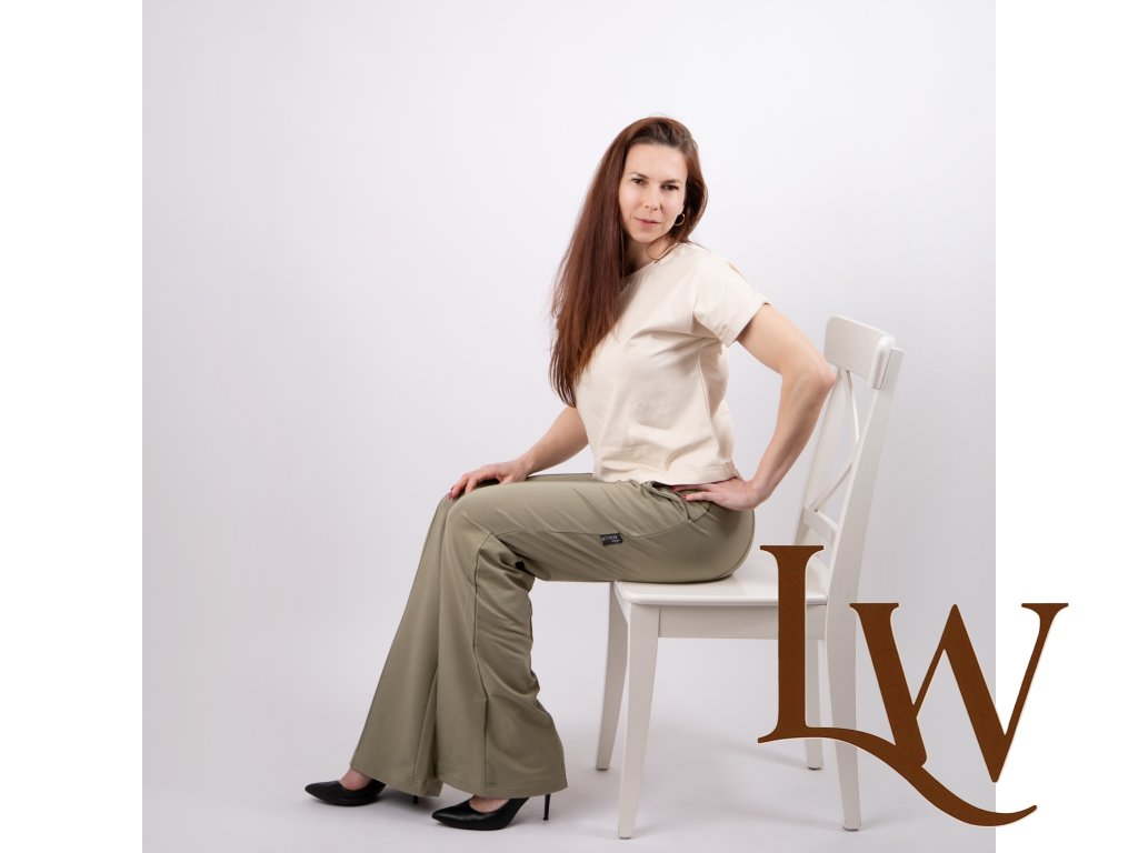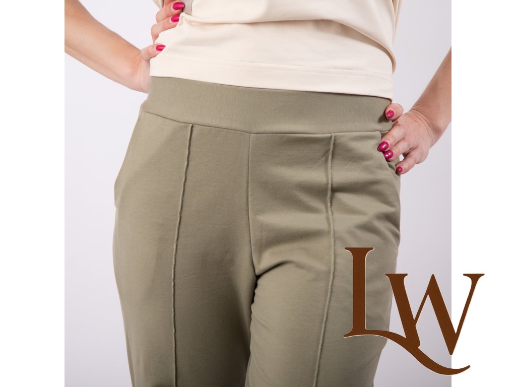 Športovo - elegantné široké nohavice s pukmi ušité z prémiovej teplákoviny ktorá zabezpečí to najväčšie pohodlie pri nosení.Ušité na Slovensku z certifikovaného materialu. Na foto veľkosť 36 výška postavy 172 cm
