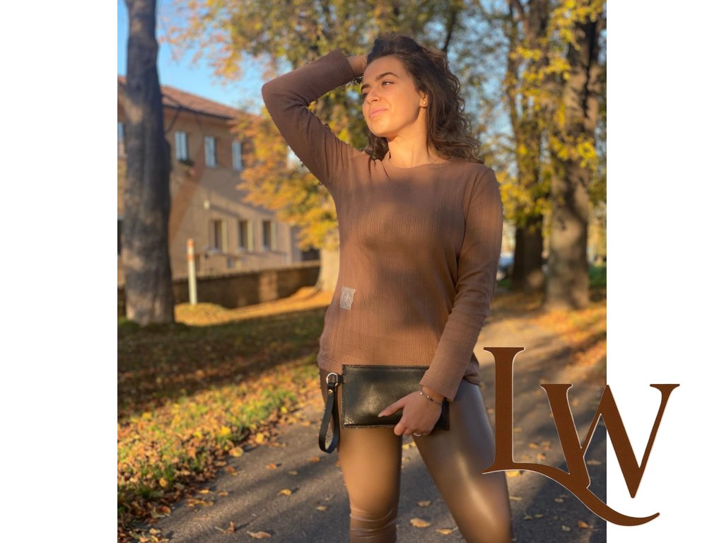 Tričko s dlhým rukávom a hlbším výstrihom ušité z veľmi zaujímavého dierkovaného úpletu , ktorý robí toto jednoduché tričko iným a zaujímavým.